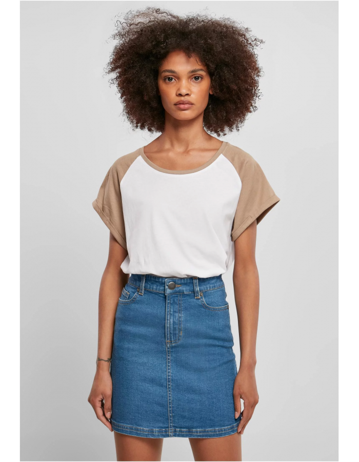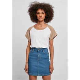 Dámské kontrastní raglánové tričko bílé/softtaupe XS