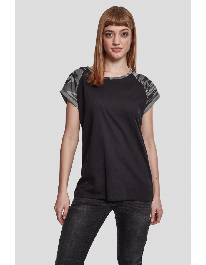 Dámské kontrastní raglánové tričko černé/tmavé camo