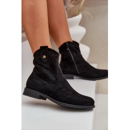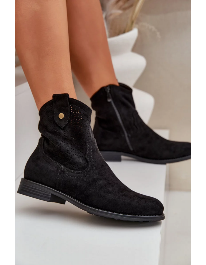 Stylové kotníkové botky S.Barski HY51-063 v černém provedení kombinují pohodlí a moderní design. Botky jsou zateplené, takže udrží nohy v teple během chladnějších dní. Nízký podpatek zajišťuje stabilitu a pohodlnou chůzi, zatímco perforovaný vzor dodává botám elegantní a módní detail. Praktický boční zip umožňuje snadné obouvání a svlékání, ideální pro každodenní nošení.