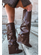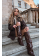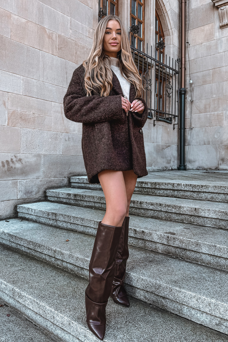 Čokoládové dámské kotníkové boty Elivira s pohodlným sloupkovým podpatkem (~ 6–7 cm) a zahnutou manžetou. Boty mají vnitřní zateplení pro teplo a komfort během chladnějších dní a boční zip pro snadné nazouvání. Elegantní design vhodný pro každodenní nošení i formálnější outfity.