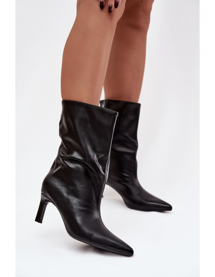 Elegantní černé dámské kotníkové boty Norell z eko kůže s jehlovým podpatkem kombinují styl a pohodlí. Elastický svršek usnadňuje nazouvání, zatímco stabilní podpatek zajišťuje komfortní chůzi. Univerzální design se hodí pro slavnostní i každodenní příležitosti.