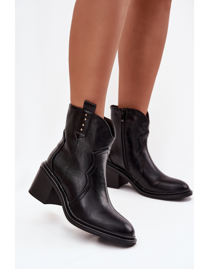 Dámské kotníkové boty Iverly v černém provedení z eko kůže jsou ideální volbou pro ženy, které hledají moderní a zároveň praktovou obuv. Masivní podpatek dodává botám výrazný vzhled a zároveň zajišťuje stabilitu při chůzi. Univerzální design se snadno kombinuje s každodenními i elegantnějšími outfity.