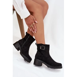 Boty dámské z eko kůže, praktické a pohodlné na každodenní nošení. Osazeny na stabilním nízkém podpatku typu klinek pro jistý krok. Model se zapínáním na zámek a ozdobnou přezkou, která dodává stylový akcent. Vnitřek boty je zateplený, zajišťuje teplo a komfort v chladnějších dnech. Ideální kombinace pohodlí a elegance.