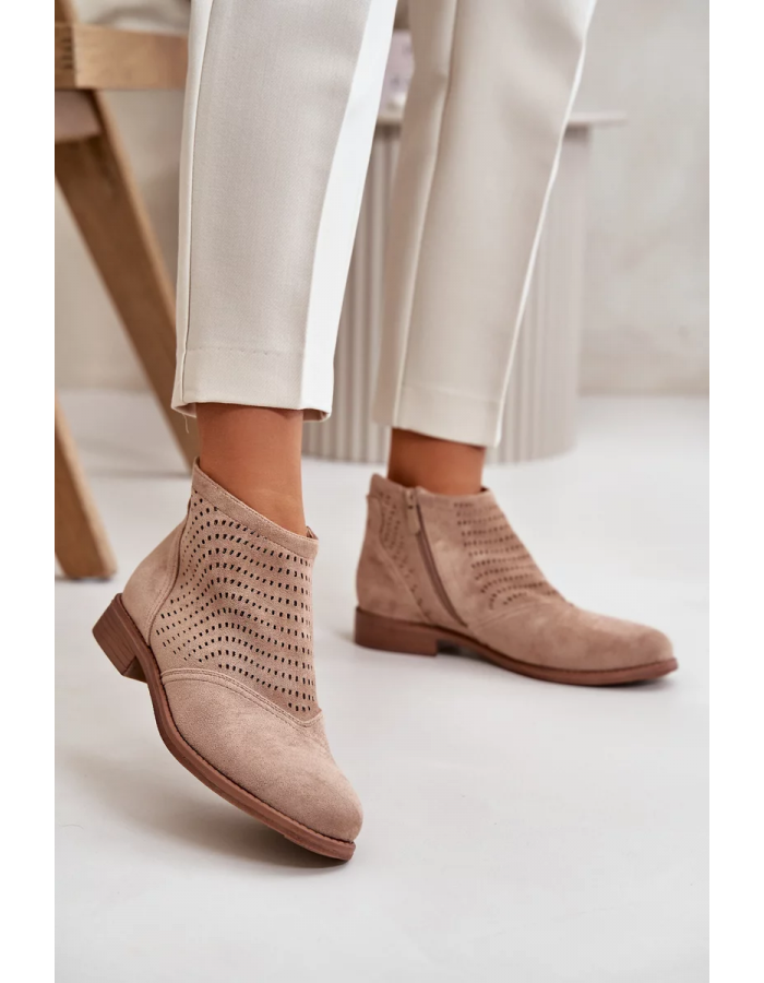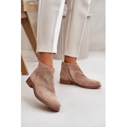 Dámské Kotníkové Boty Na Plochém Podpatku Ažurové Béžové S.Barski Velikost: 40