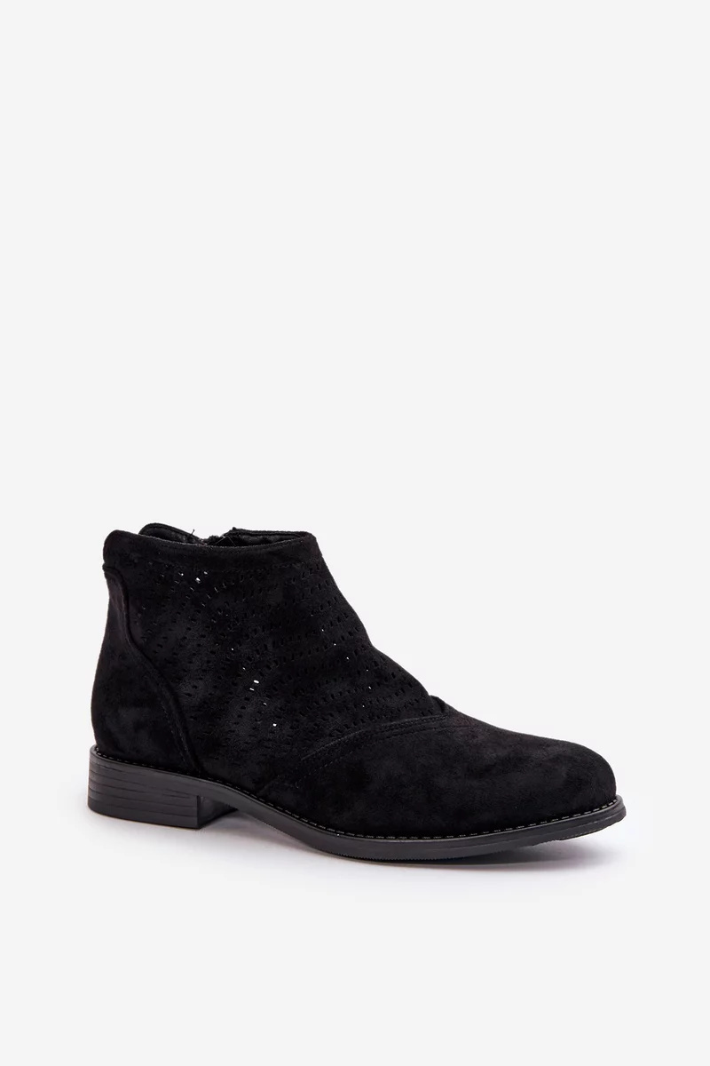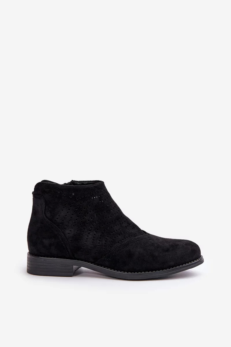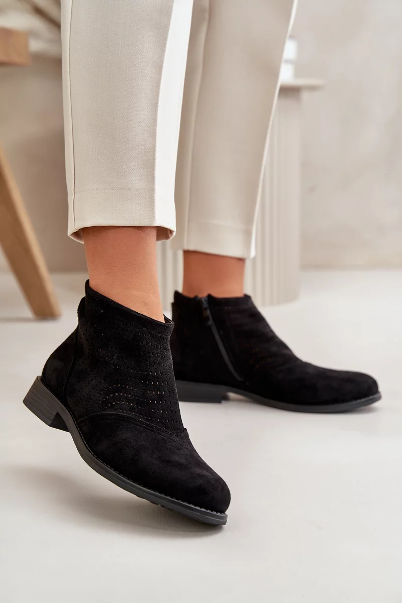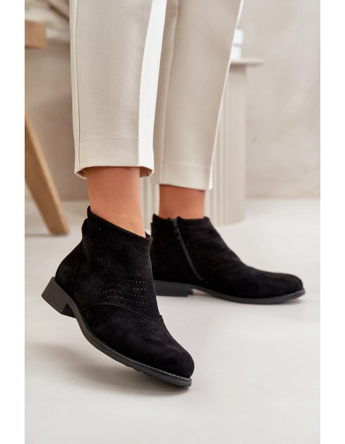 Dámské Kotníkové Boty Na Plochém Podpatku Ažurové Černé S.Barski Velikost: 40