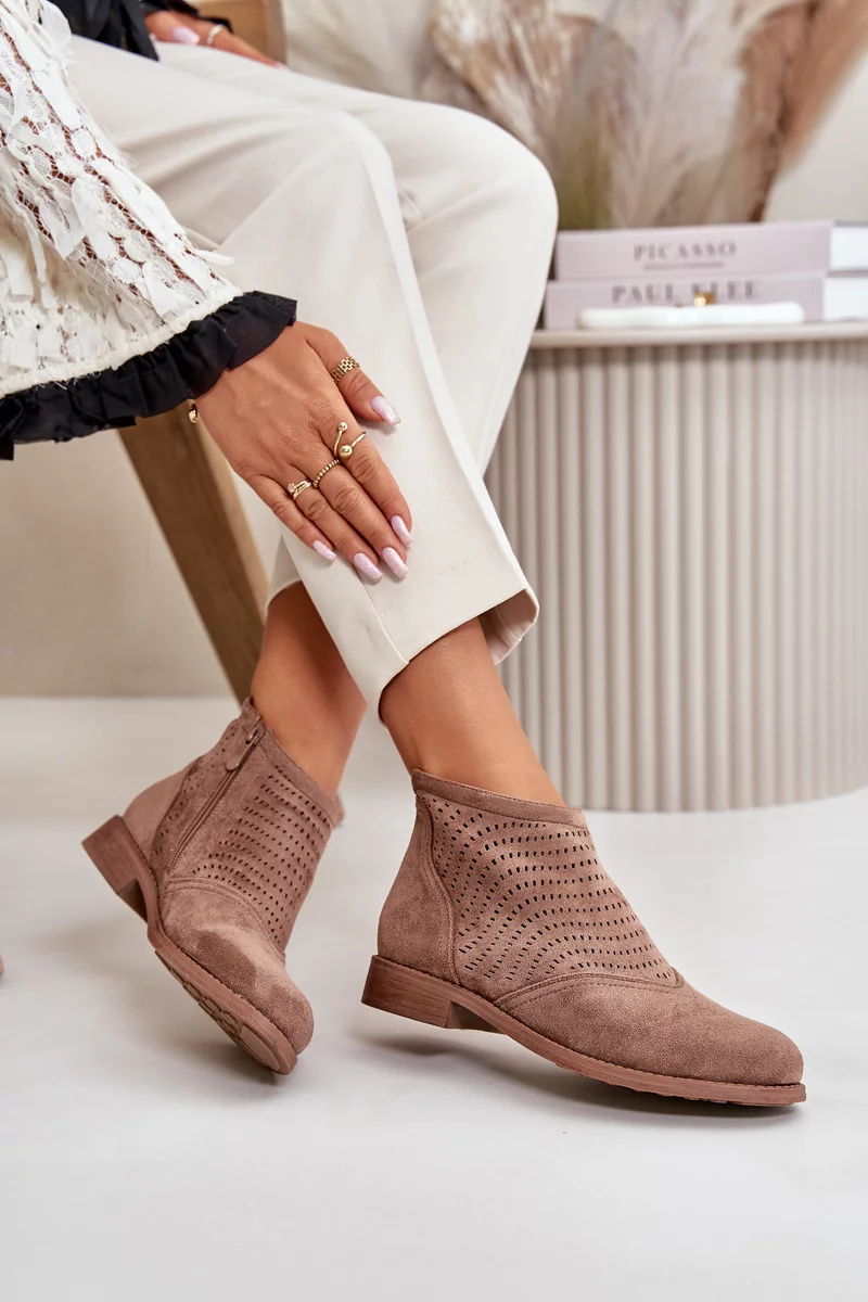 Barski. Vyrobeno z eko semiše. Ažurový svršek sahající nad kotník jim dodává jemnost. Plochý podpatek zajišťuje stabilitu a pohodlí při nošení. Zapínání na zámek usnadňuje rychlé obouvání a zouvání obuvi. Zaoblené špičky. Klasický střih, který jistě sladíte s mnoha outfity! Při výběru velikosti se prosím řiďte tabulkou velikostí.