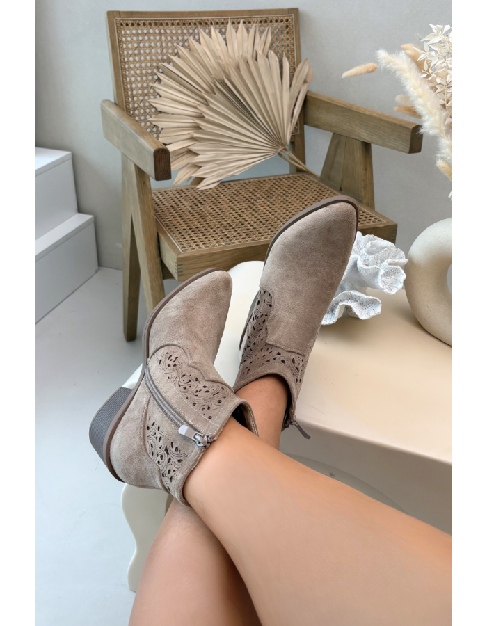 Dámské kotníkové boty S.Barski v béžovém provedení zaujmou jemným ažurovým vzorem, který dodává obuvi lehkost a elegantní vzhled. Plochý podpatek zajišťuje stabilitu a pohodlí při každodenním nošení. Díky neutrálnímu béžovému odstínu se boty snadno kombinují s různými styly a jsou ideální volbou pro přechodné období.