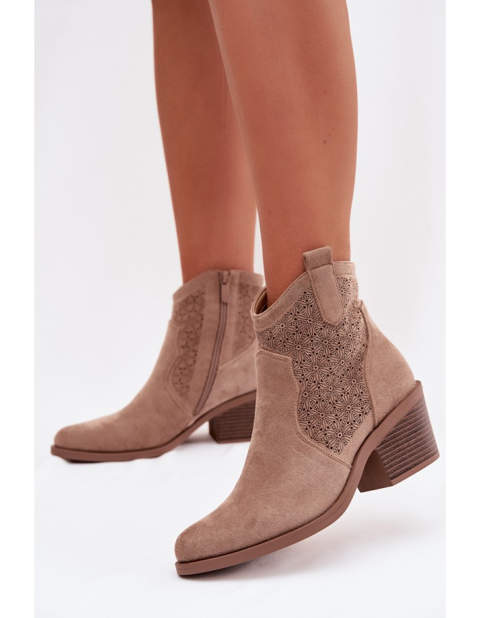 Dámské kotníkové boty S.Barski v béžovém provedení zaujmou elegantním ažurovým vzorem, který dodává obuvi lehkost a jemný, ženský charakter. Stabilní podpatek opticky prodlužuje siluetu a zároveň zajišťuje pohodlný došlap. Béžová barva působí nadčasově a snadno se kombinuje s každodenními i elegantnějšími outfity.