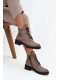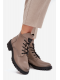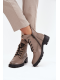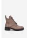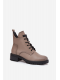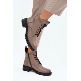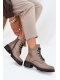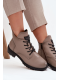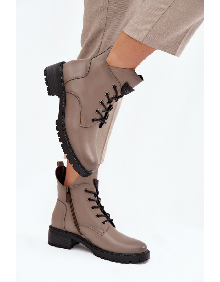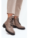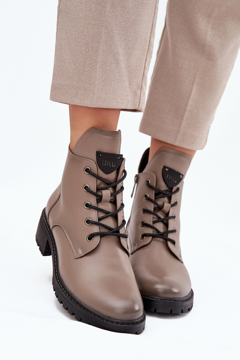 Dámské zateplené botky Vinceza v šedé barvě. Mají blokový podpatek (~ 4 cm), kombinaci šněrování a bočního zipu pro dobré přizpůsobení a stabilitu. Vnitřek je zateplen měkkým materiálem („kocykem obuwniczym“), ideální pro chladné dny.