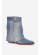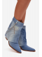 Dámské kotníkové boty Ilyana v džínovém provedení zaujmou moderním designem doplněným o dekorativní řetízek, který dodává obuvi stylový a výrazný akcent. Sloupkový podpatek zajišťuje stabilní a pohodlný došlap, zatímco netradiční denimový vzhled přináší originální prvek do městských i módních outfitů.