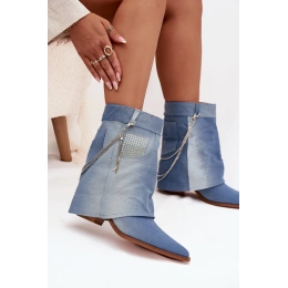 Džínové kotníkové boty s řetízkem skvěle doplní jednoduchý outfit v černé, bílé nebo béžové barvě a stanou se výrazným módním prvkem.