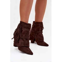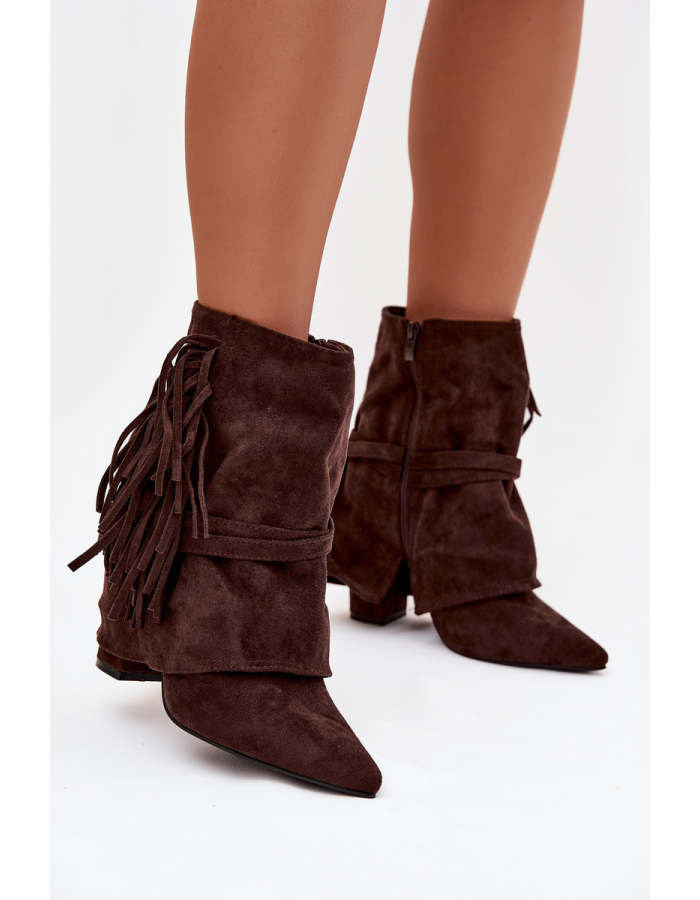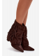 Model je ozdoben třásněmi a tenkými pásky se zlatými přezkami, což vytváří módní akcent a dodává botám moderní a výrazný vzhled. Boty se skvěle hodí jak k casual outfitům, tak k elegantnějším kombinacím, přinášejí do stylizací originalitu a šmrnc.