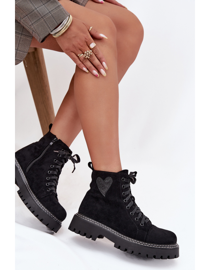 Dámské kotníkové boty Nariri jsou hravé a stylové díky brokátovému srdci, které zdobí boční část boty a dodává modelu osobitý a ženský vzhled. Boty jsou vyrobené z kvalitní eko kůže, osazeny stabilní platformou a zatepleným vnitřkem, který zajistí pohodlí a teplo během chladných dnů. Praktický boční zip usnadňuje obouvání a zouvání.
