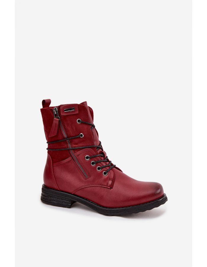 Kotníkové boty Perfecto jsou vyrobené z kvalitní eko kůže, která dodává odolnost a elegantní vzhled. Robustní podrážka s výrazným vzorkem zajišťuje stabilitu i na kluzkém povrchu, zatímco měkký vnitřek poskytuje komfort při každodenním nošení. Šněrování umožňuje přizpůsobit šířku podle nohy a boční zip usnadňuje obouvání. Bordó odstín působí elegantně, ale zároveň výrazně – ideální pro ženy, které chtějí vyniknout.