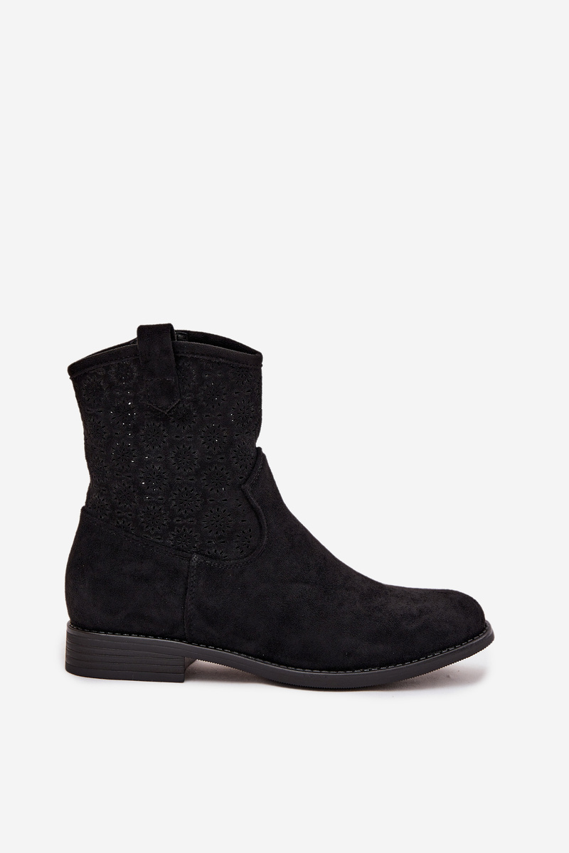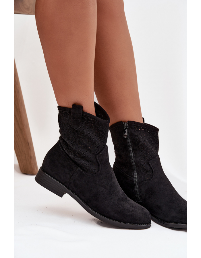 Jemný ažurový vzor na svršku dodává botám lehkost, ženský půvab a originální charakter. Model je postaven na plochém podpatku, který zajišťuje komfort a volnost při každodenním nošení. Zapínání na zip usnadňuje obouvání a zouvání, díky čemuž jsou boty praktickou a pohodlnou volbou pro každý den.
