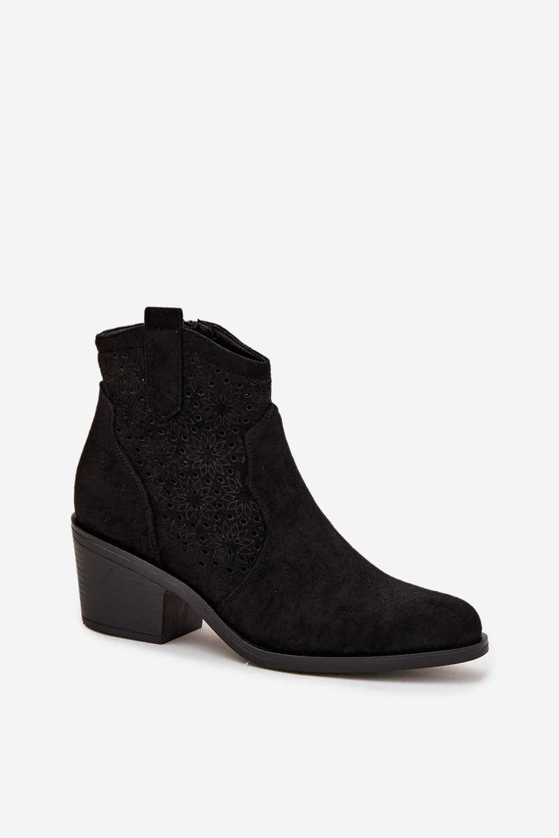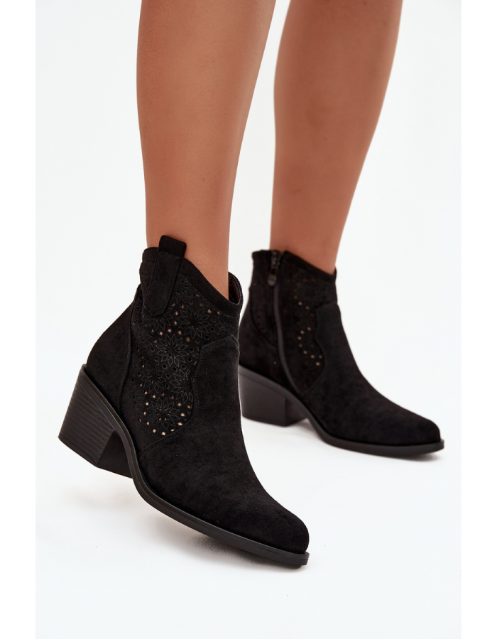Jemný ažurový vzor na svršku dodává botám lehkost, originalitu a subtilně je odlišuje od klasických kovbojek. Boty jsou osazeny na stabilním, sešikmeném podpatku, který zajišťuje pohodlí při chůzi a současně dodává stylové, westernem inspirované zakončení.