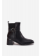 Černé zateplené kotníkové boty Sylira s pohodlným sloupkovým podpatkem (cca 7 cm). Mají ozdobný pásek s přezkou přes nárt a boční zip pro snadné nazouvání. Vnitřní zateplení zajišťuje teplo v chladnějších dnech. Elegantní a stylový design je vhodný pro každodenní nošení i formálnější outfity.