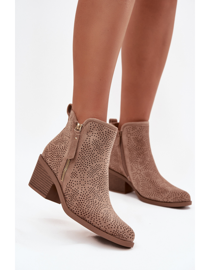 Dámské botky v kovbojském stylu od značky S.Barski představují perfektní kombinaci elegance, pohodlí a moderního designu. Vyrobené z kvalitních materiálů, zaujmou precizním zpracováním a stylovými detaily. Model je osazen na stabilním, šikmém podpatku typu sloupek, který poskytuje jistotu při chůzi a zároveň jemně prodlužuje nohy. Díky migdalově tvarované špičce působí obuv žensky a ladně. Praktické zapínání na zip zaručuje snadné obouvání i zouvání, zatímco ozdobný boční zip dodává botkám originální charakter a moderní nádech. Tyto botky skvěle doplní casualové i boho outfity, například se šaty, sukní nebo úzkými džínami. Při výběru velikosti doporučujeme řídit se tabulkou velikostí. Délka stélky: 36 – 23 cm / 37 – 24 cm / 38 – 24,5 cm / 39 – 25 cm / 40 – 26 cm / 41 – 26,5 cm