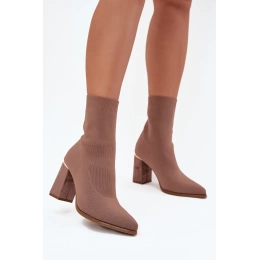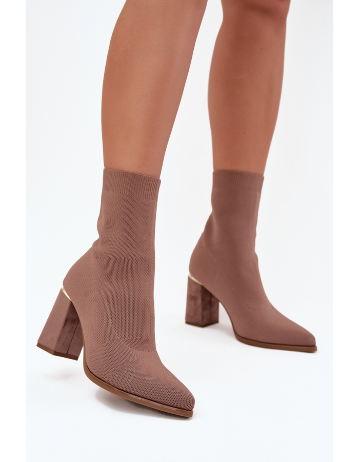 Béžové nazouvací kotníkové boty Virelle z textilního materiálu s pohodlným sloupkovým podpatkem (~ 6 cm). Mají pružný svršek pro snadné nazouvání a elegantní minimalistický design vhodný pro každodenní nošení.