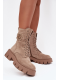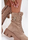 Botky dámské typu worker spojují městský styl s pohodlím. Model je zateplený měkkým kocem obuwniczym, který zajišťuje teplo v chladnějších dnech. Kombinace šněrování a bočního zipu umožňuje snadné obouvání a perfektní přizpůsobení chodidlu. Masyvní podpatek a platforma poskytují stabilní krok, zatímco jemný ozdobný detail po straně cholevky dodává botám charakter a módní akcent. Skvěle se hodí do každodenních stylizací.