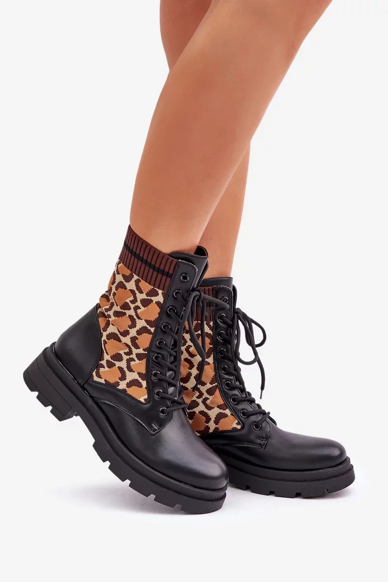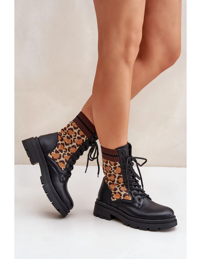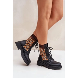 Dámské kotníkové boty vyrobené z kombinace eko kůže a tkaniny, ozdobené stylovým leopardím vzorem. Model se šněrováním a zaoblenými špičkami, což zajišťuje pohodlí a stabilitu. Vnitřek zateplený na úrovni chodidla, ideální pro chladnější dny. Skvělá volba pro ženy, které si cení pohodlí a módních akcentů. Při výběru velikosti se prosím řiďte tabulkou velikostí.