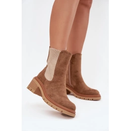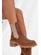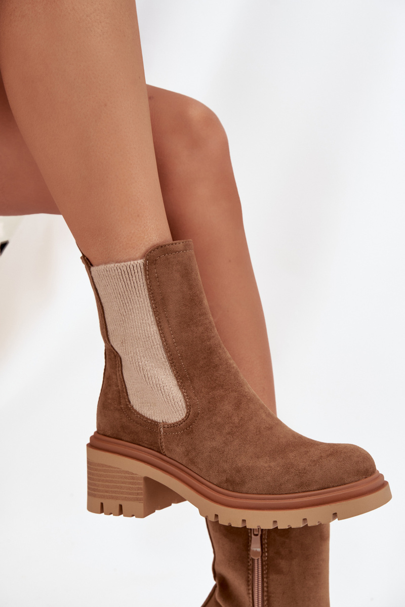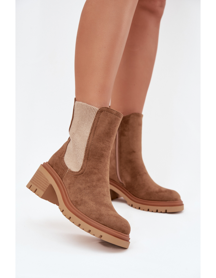 Tmavě béžové zateplené boty Zoralia z eko‑semiše s blokovým podpatkem (cca 5 cm) pro stabilní chůzi. Mají boční zip pro snadné nazouvání a měkké zateplení uvnitř, které zajišťuje teplo během chladných dní. Elegantní design se hodí pro každodenní nošení i do formálnějších outfitů.