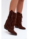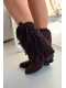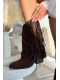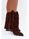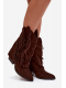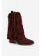 Dámské kovbojské kotníkové boty Gralina v elegantním čokoládovém odstínu jsou výrazným doplňkem stylových outfitů. Třásně dodávají botám dynamický vzhled inspirovaný westernovým stylem, zatímco stabilní sloupkový podpatek zajišťuje pohodlí i při celodenním nošení.