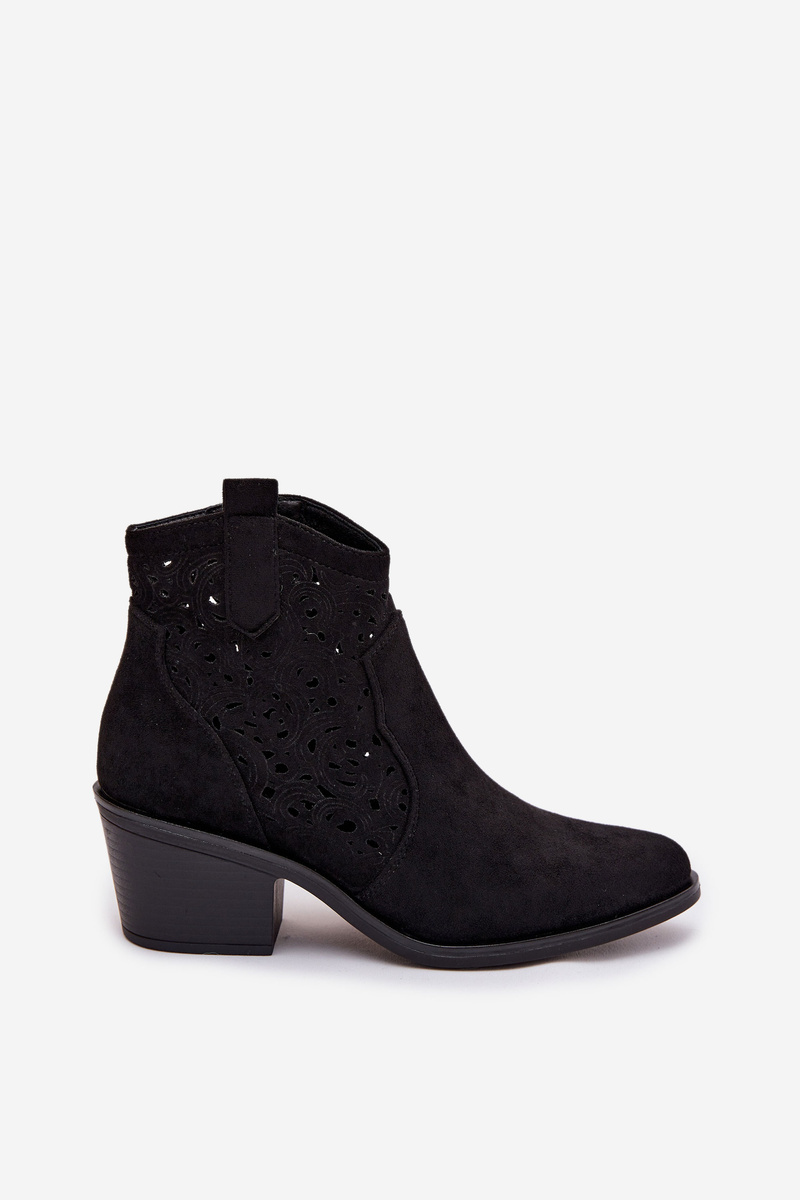 Dámské kovbojské kotníkové boty S.Barski v černém provedení spojují výrazný westernový styl s elegantním ažurovým vzorem, který dodává obuvi lehkost a originální vzhled. Stabilní podpatek podtrhuje ženskou siluetu a zároveň zajišťuje pohodlný a jistý došlap. Černá barva působí nadčasově a univerzálně, takže boty snadno sladíte s ležérními i výraznějšími outfity.