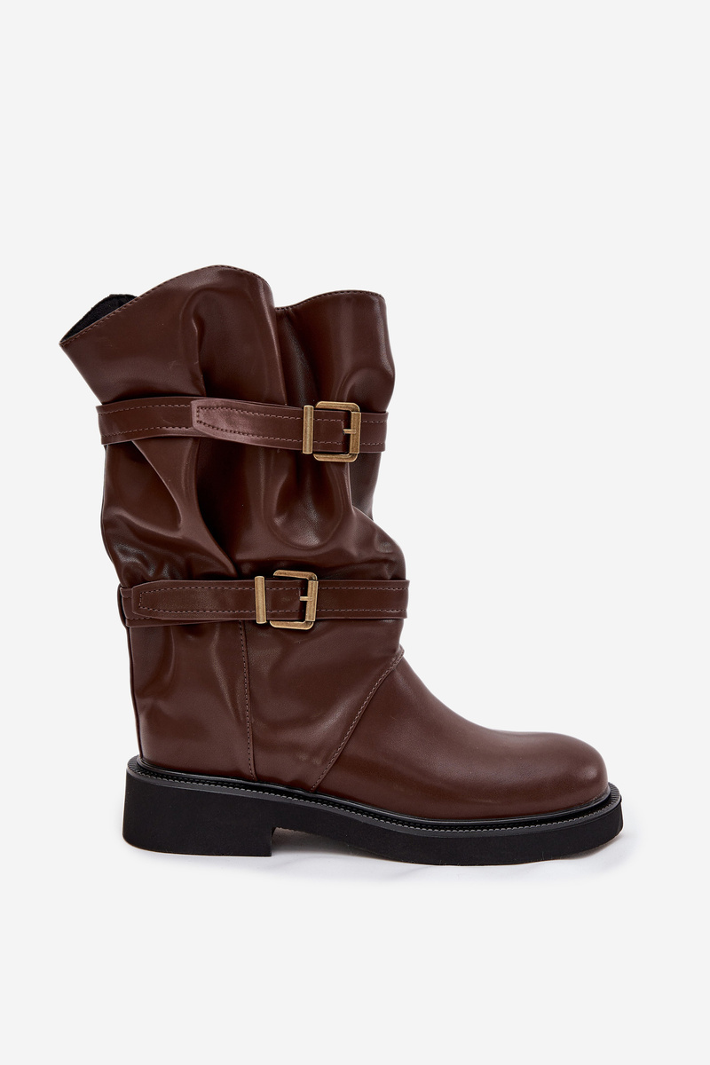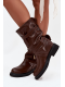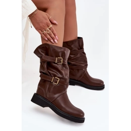 Dámské kozačky vyrobené z eko kůže představují módní a pohodlnou volbu pro chladnější dny. Model je postaven na plochém podpatku, který zajišťuje komfort po celý den, a nazouvací střih umožňuje rychlé a pohodlné obouvání.