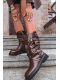 Výrazným prvkem je nařasený svršek sahající ke kolenům, doplněný dekorativními pásky se sponami, které přinášejí stylový, lehce rockový vzhled.