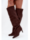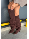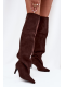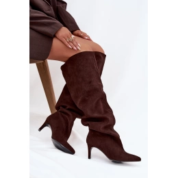 Kozačky s cholewkou sahající za koleno jsou elegantní a stylovou volbou pro podzimně-zimní sezónu. Vsuvné a osazené na štíhlém jehlovém podpatku nejen dodávají postavě lehkost, ale také opticky prodlužují nohy a zvýrazňují ženské tvary. Špičaté špičky přinášejí sofistikovaný akcent a kvalitní materiál zajišťuje odolnost a pohodlí při nošení. Tyto kozačky se skvěle hodí jak k elegantním šatům a sukním, tak k módním casual outfitům a stanou se efektním doplňkem každé zimní stylizace.