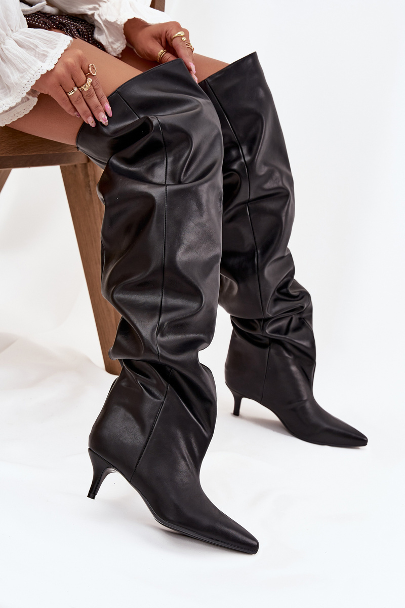 Černé dámské kozačky Ysolienne na jehlovém podpatku nabízejí elegantní vzhled a pohodlí. Elastický svršek usnadňuje nazouvání, zatímco stabilní podpatek zajišťuje komfortní a bezpečný krok. Univerzální design se hodí pro různé příležitosti, od formálních po každodenní outfity.