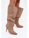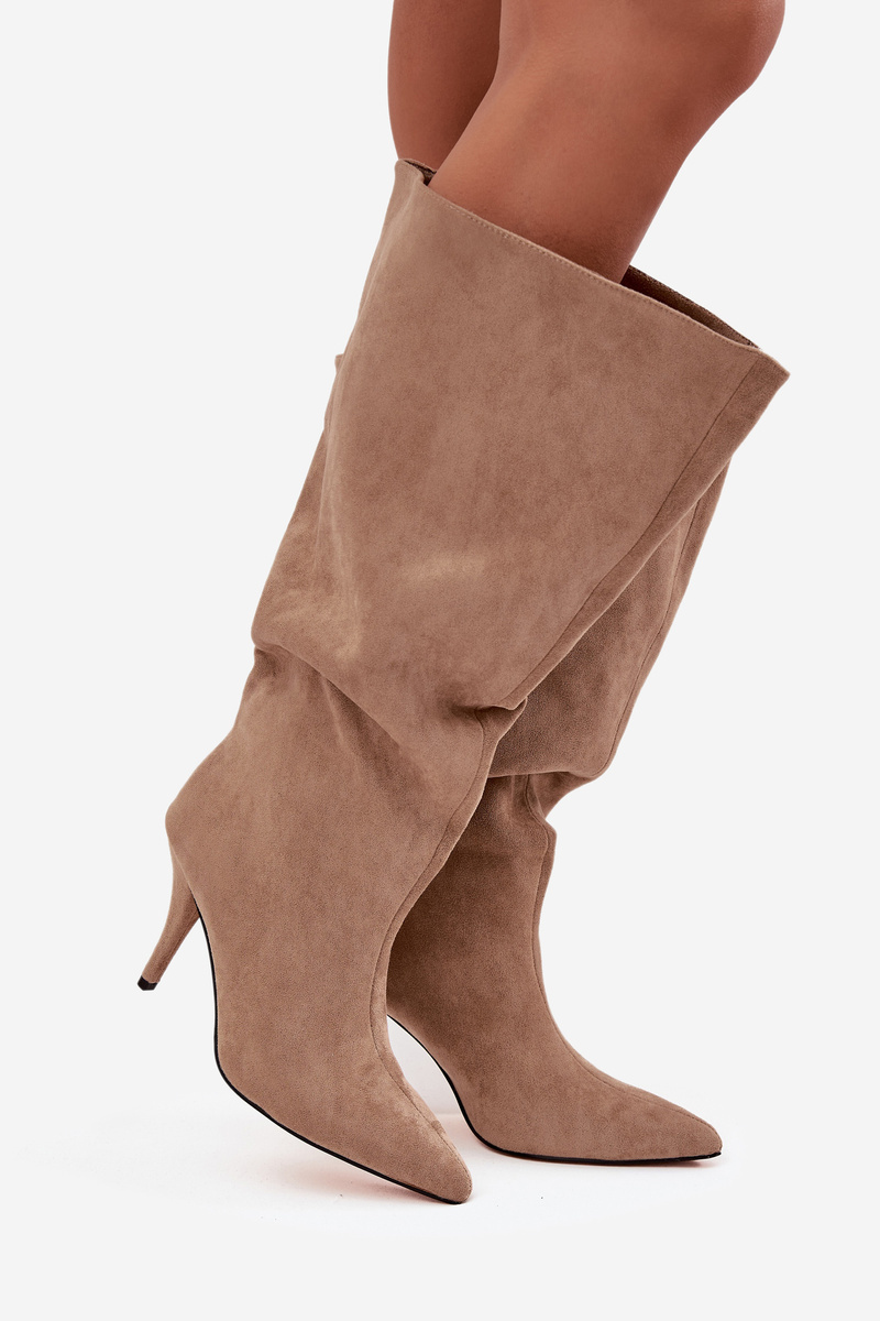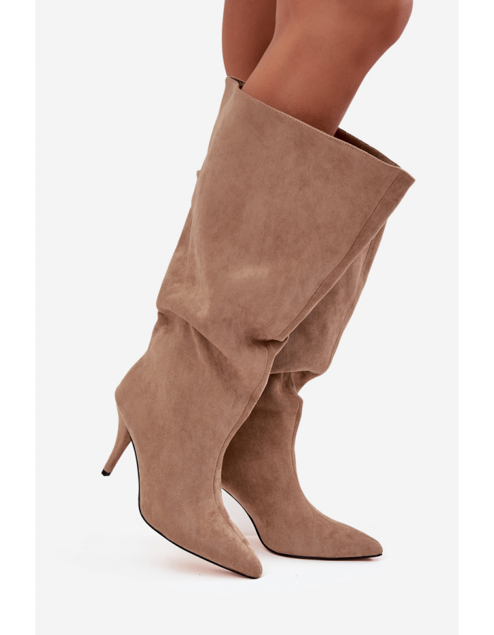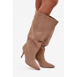 Elegantní dámské kozačky Noretta v béžovém odstínu okouzlí svým ženským střihem, jemným eko semišem a štíhlým jehlovým podpatkem. Perfektní volba pro ženy, které chtějí spojit styl, eleganci a komfort.
