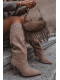 Kozačky Noretta jsou symbolem moderní elegance. Vyrobené z měkkého eko semiše, krásně obepínají nohu a vytvářejí ladnou siluetu. Nazouvací střih bez zipu působí minimalisticky a elegantně. Jehlový podpatek dodává botám šmrnc a prodlužuje nohy, zatímco vnitřní zateplení zajišťuje pohodlí i v chladnějším počasí. Díky béžovému odstínu se snadno kombinují s různými outfity a dodají jim jemný, ženský nádech.