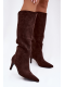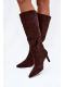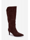Elegantní dámské kozačky Arelisse z eko semiše v čokoládovém odstínu, s teplou podšívkou pro komfort v chladném počasí. Jehlový podpatek dodává ženský a sofistikovaný vzhled, uzavřená špička a pohodlná stélka zajišťují celodenní pohodlí.