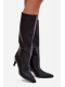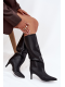 Dámské kozačky z eko kůže jsou elegantní volbou pro chladnější dny. Wsuwané a osazené na štíhlém jehlovém podpatku dodávají postavě lehkost a ženský šarm. Špičaté špičky zdůrazňují sofistikovaný vzhled, zatímco zateplení zajišťuje pohodlí a teplo v podzimních a zimních dnech. Ideální pro výrazné a módní outfity.
