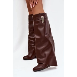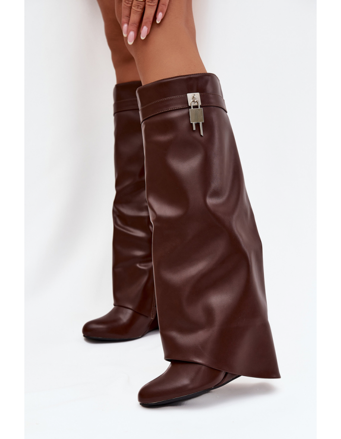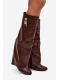 Model je zapínaný na praktický zip a efekt ohrnovaného svršku dodává botám výjimečný charakter. Celkový vzhled doplňuje pásek s ozdobným detailem umístěný na vrchní části, který tvoří jemný dekorativní akcent.