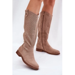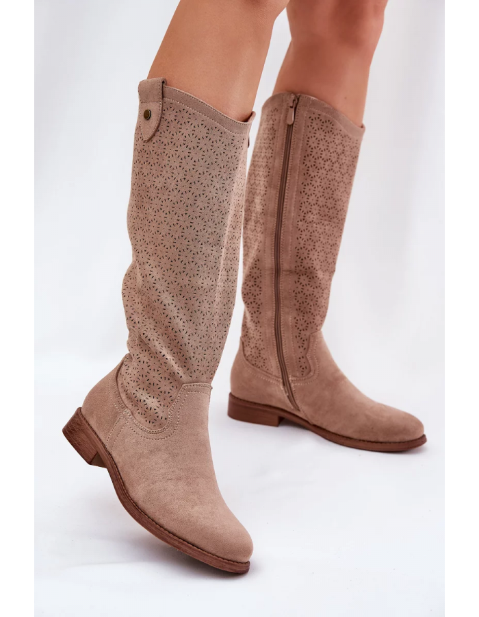 Elegantní dámské kozačky S.Barski v béžovém odstínu kombinují pohodlný nízký podpatek s módním perforovaným (ažurovým) vzorem. Hladký eko kožený materiál dodává botám nadčasový vzhled, zatímco stabilní nízký podpatek zajišťuje pohodlnou chůzi po celý den. Kozačky jsou praktické, pohodlné a vhodné pro každodenní nošení.