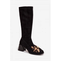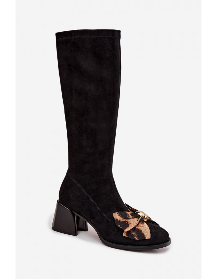 Stylové dámské kozačky D&A v černém provedení kombinují elegantní design, pohodlný blokový podpatek a jemnou ozdobnou mašličku pro sofistikovaný vzhled.