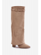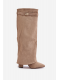 Stylové dámské kozačky Evyra v béžovém odstínu kombinují pohodlný sloupkový podpatek s módní vyhrnutou horní částí. Hladký materiál a elegantní linie dodávají botám nadčasový vzhled, zatímco stabilní podpatek zajišťuje pohodlnou chůzi. Praktický postranní zip usnadňuje obouvání a zvyšuje komfort při nošení.