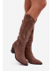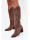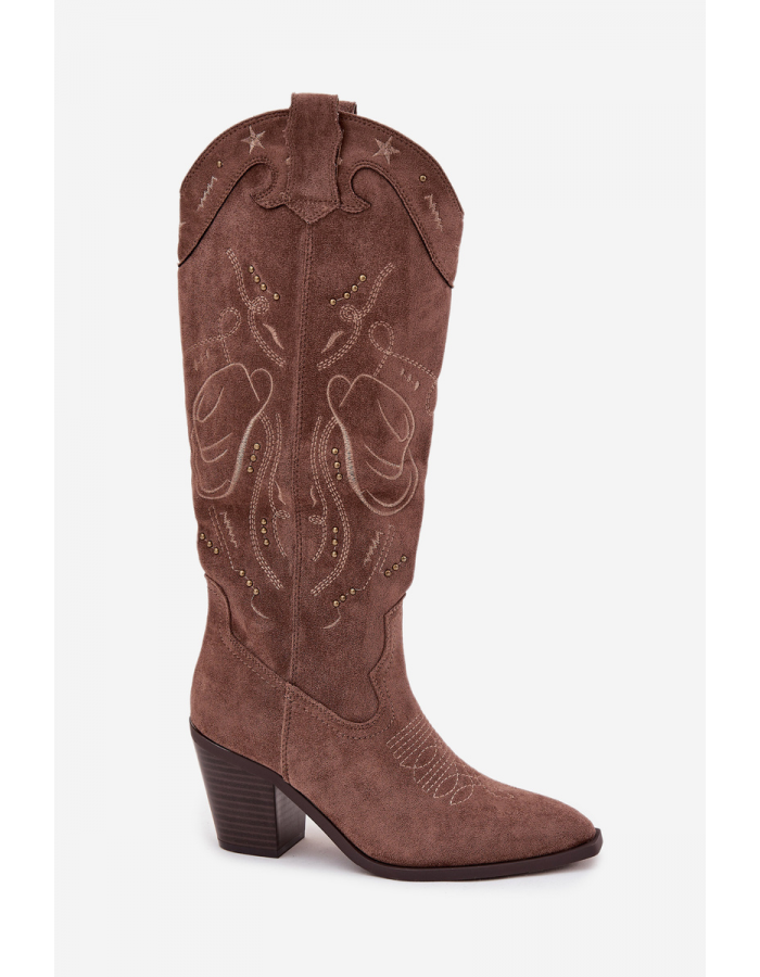 Stylové dámské kozačky Coretta v khaki barvě s eko semišovým svrškem a pohodlným sloupkovým podpatkem – ideální pro trendy westernový vzhled.