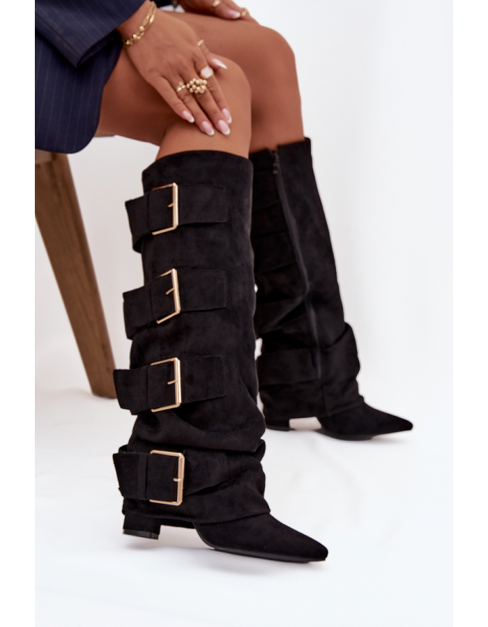 Stylové dámské kozačky z eko semiše kombinují eleganci a moderní vzhled. Sloupkový podpatek spolu se špičatou špičkou krásně zdůrazňuje ženskou siluetu.