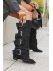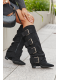 Ohrnovaný svršek, ozdobený zlatými přezkami, upoutává pozornost a dodává botám charakter, zatímco zip usnadňuje rychlé obouvání a sundávání.
