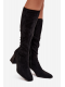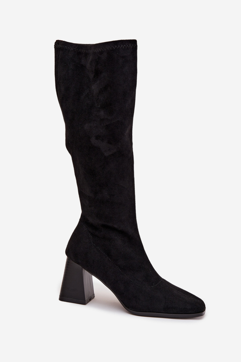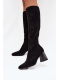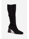 Stylové dámské kozačky vyrobené z měkkého eko semiše kombinují komfort a módní vzhled. Stabilní sloupkový podpatek zajišťuje pohodlí při nošení, zatímco jemně zaoblená špička dodává botám subtilní charakter.