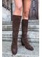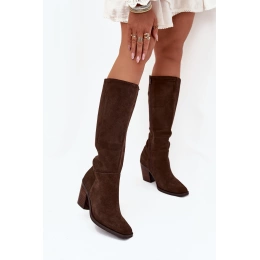 Kozačky ladí s úzkými kalhotami, legínami nebo sukni. Čokoládový odstín dodá outfitu hřejivý a elegantní vzhled.