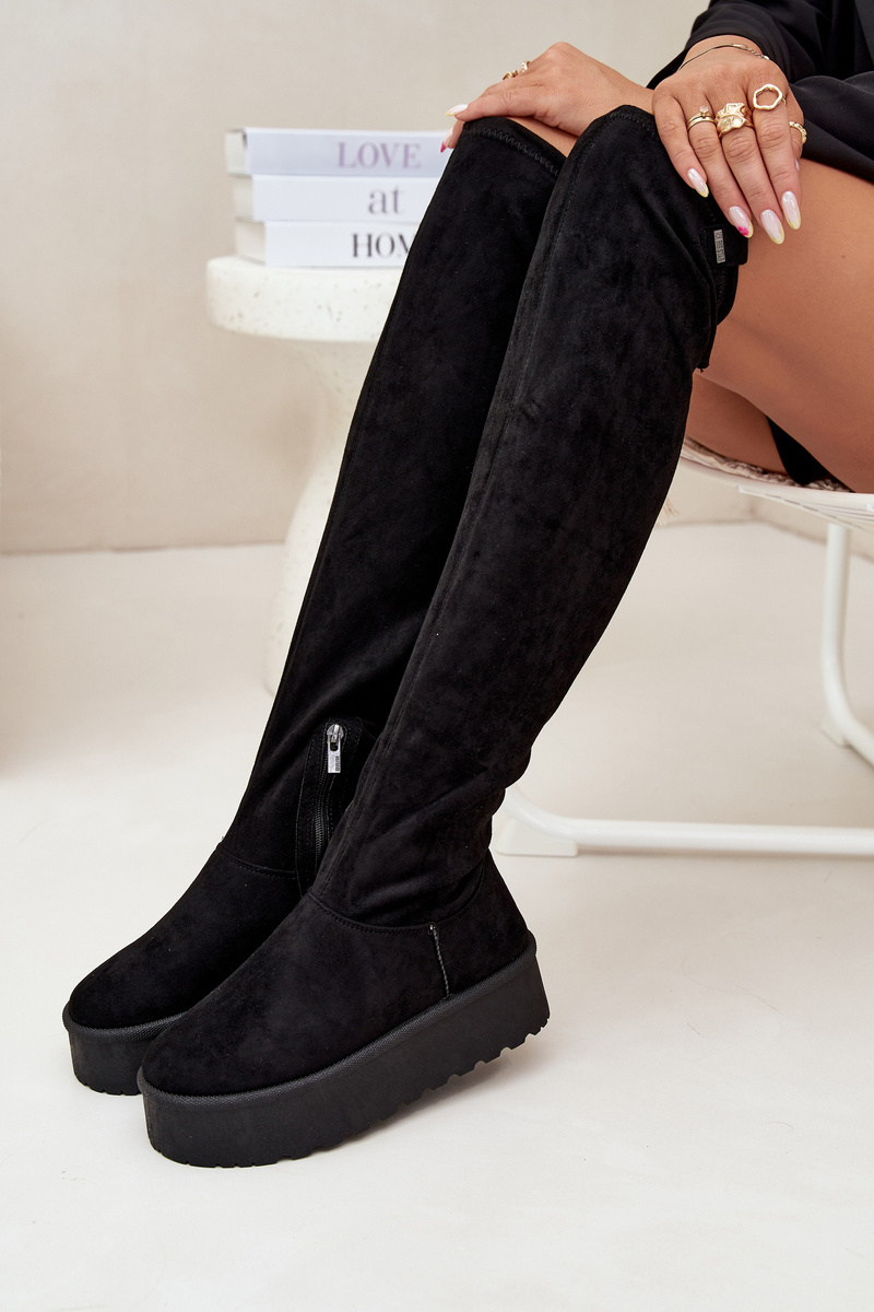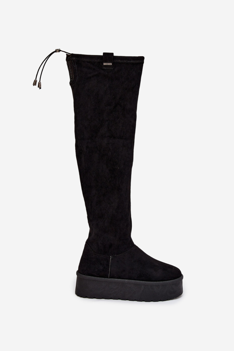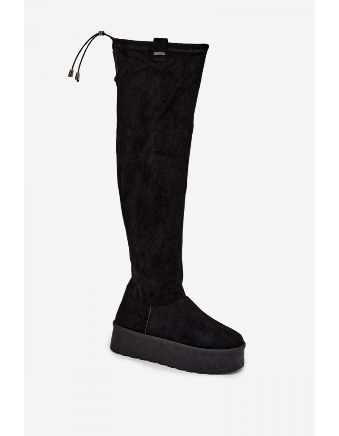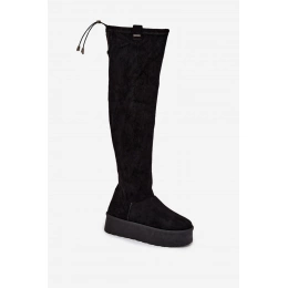 Elegantní dámské kozačky Big Star nad kolena v klasické černé barvě, ideální pro stylový a pohodlný look v chladnějším období. Platforma zajišťuje stabilitu a pohodlí při chůzi, zatímco kvalitní materiály poskytují odolnost a dlouhou životnost.