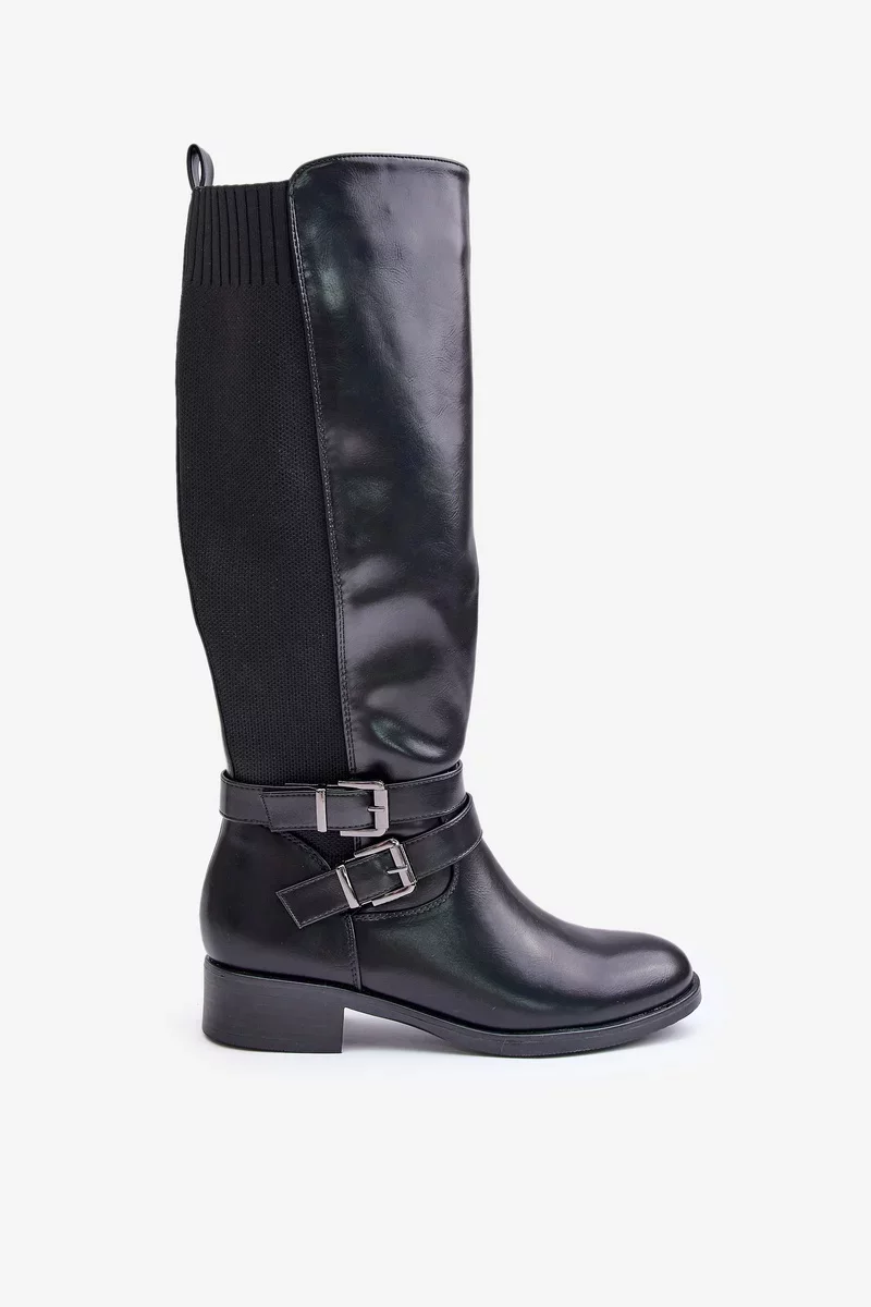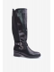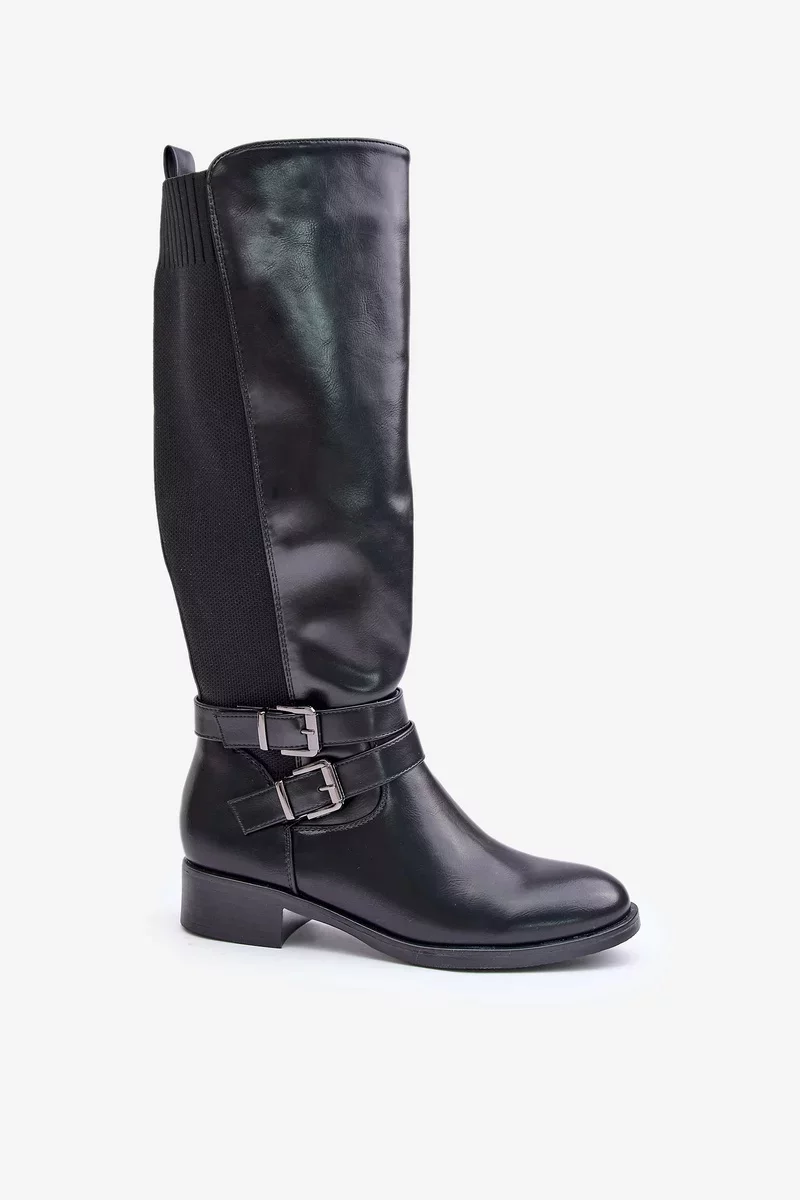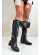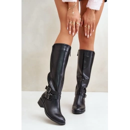 Dámské kozačky klasického střihu, vyrobené z eko kůže. Osazené na plochém podpatku, což zajišťuje pohodlí při každodenním nošení. Špičky jsou zaoblené a svršek sahá před koleno, což dodává eleganci a prodlužuje postavu. Zapínání na zámek, usnadňující oblékání. Další výhodou jsou ozdobné pásky se zlatými sponami, které dodávají jedinečný charakter. Při výběru velikosti se prosím řiďte tabulkou velikostí.