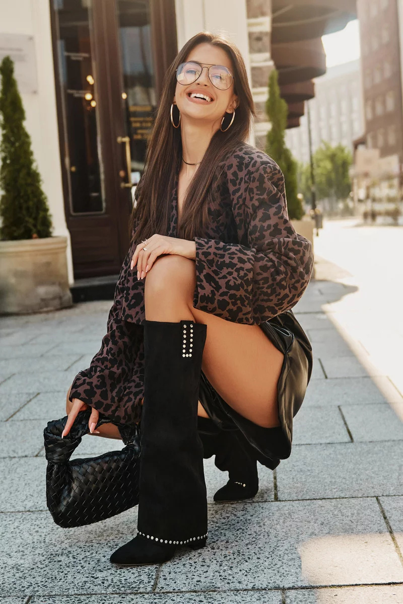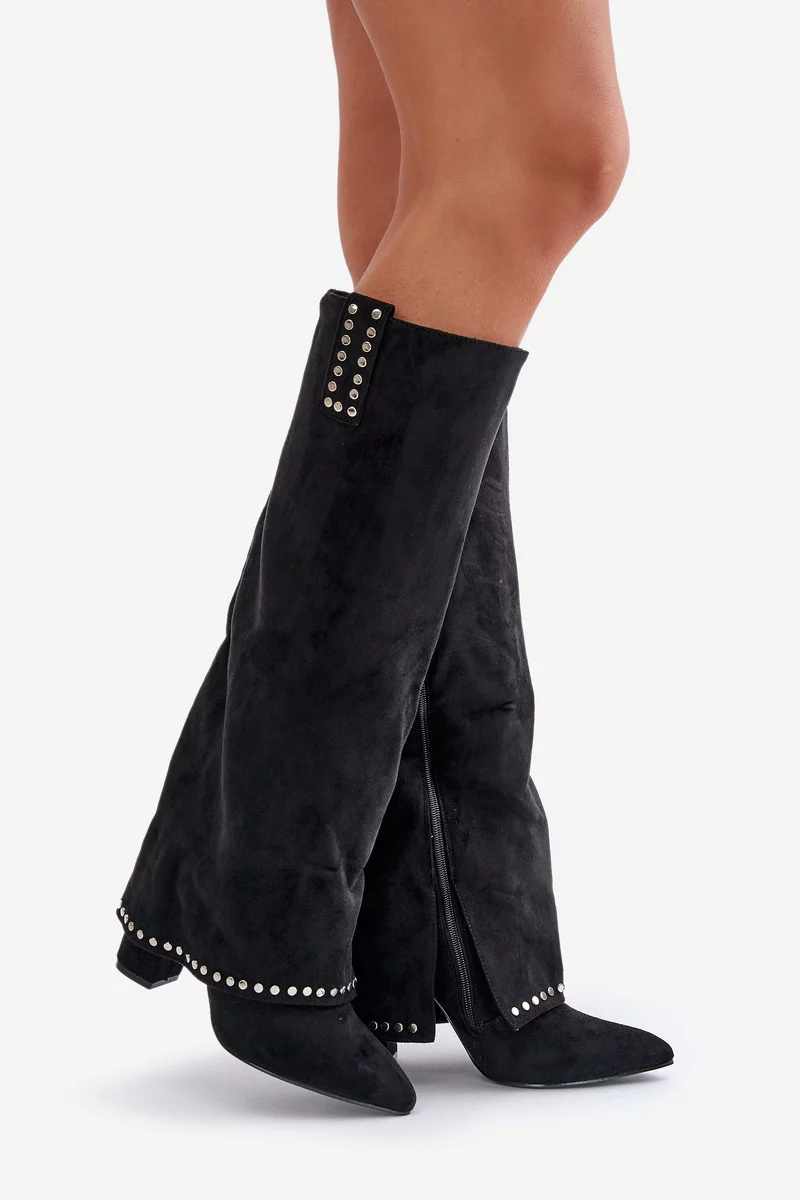 Dámské kozačky s volným svrškem vyrobené z eko semiše.