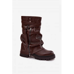 Stylové dámské kozačky Darisa v čokoládovém odstínu kombinují pohodlí, eleganci a módní detail. Ohrnutá holenice a pásek dodávají botám moderní a sofistikovaný vzhled.