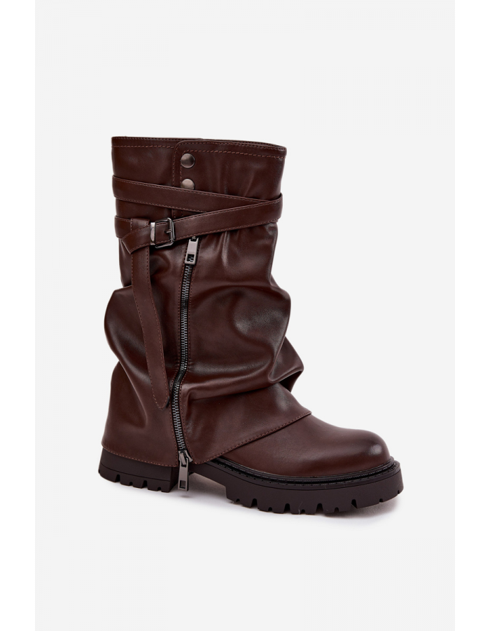 Kozačky Darisa jsou vyrobené z kvalitní eko kůže, která působí luxusně a snadno se udržuje. Ohrnutá holenice vytváří elegantní efekt, zatímco pásek podtrhuje styl a dodává botám osobitý charakter. Střední podpatek zajišťuje pohodlnou chůzi a boční zip umožňuje snadné obouvání. Čokoládový odstín je univerzální a hodí se k různým outfitům – od šatů po džíny.